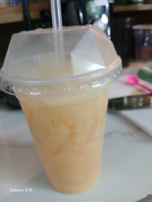 Sinh tố cam sữa nguyên chất ly khổng lồ giải nhiệt, bổ sung vitamin và khoáng chất cho cơ thể.
